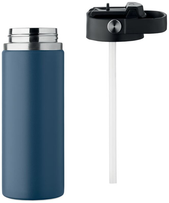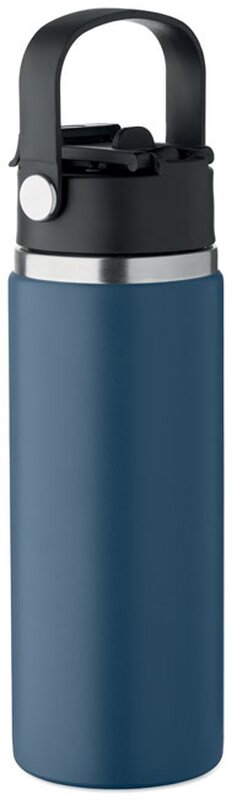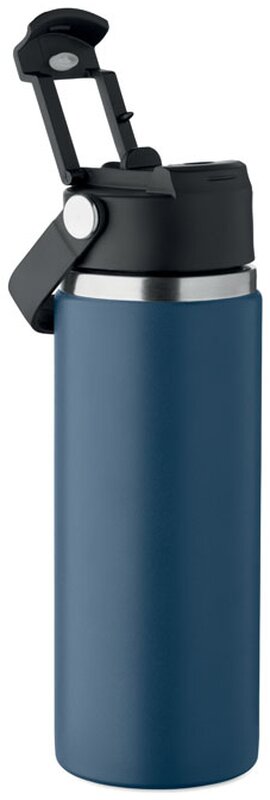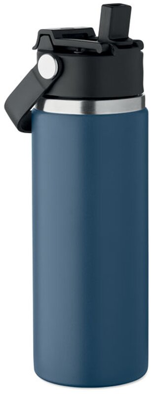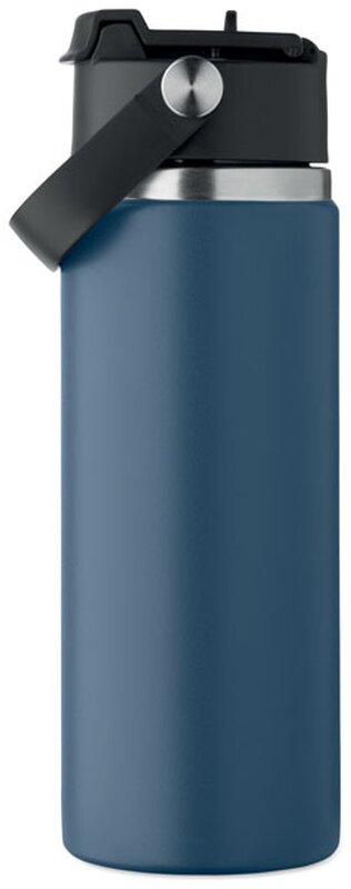 Dvoustěnná termoláhev z recyklované nerezové oceli (90 % recyklované nerezové oceli a 10 % nerezové oceli) s kombinovaným víčkem, brčkem a rukojetí. Neteče. Objem: 500 ml.