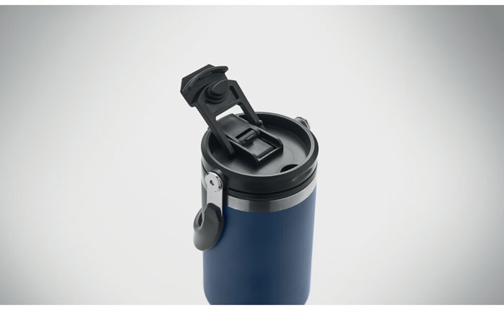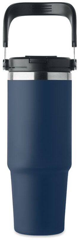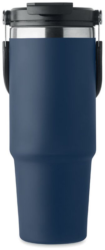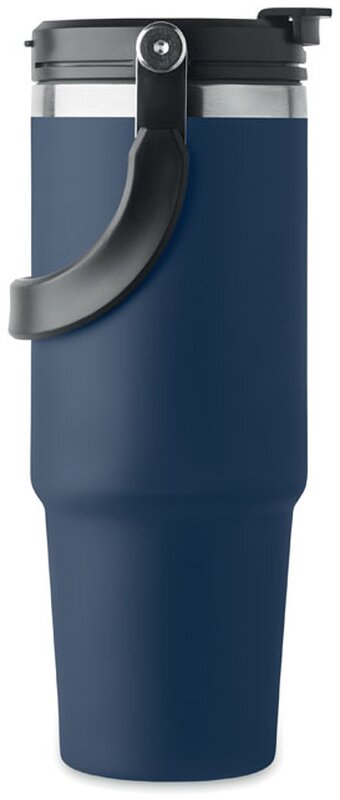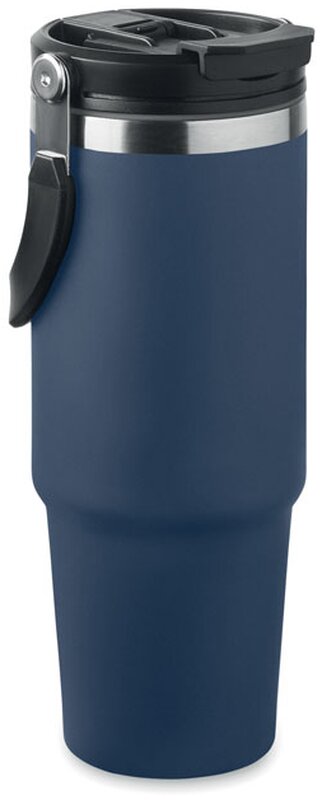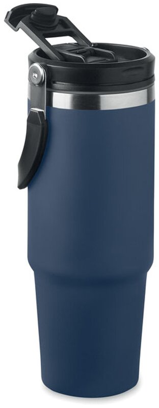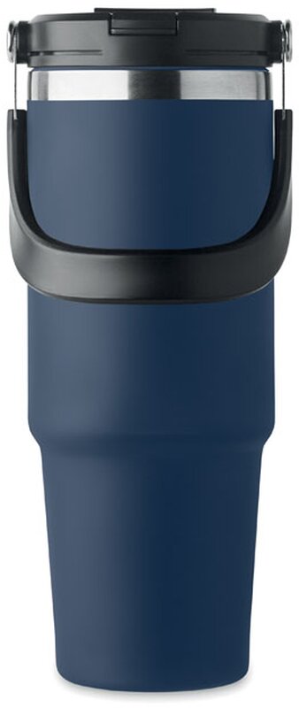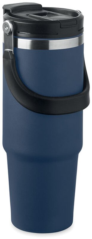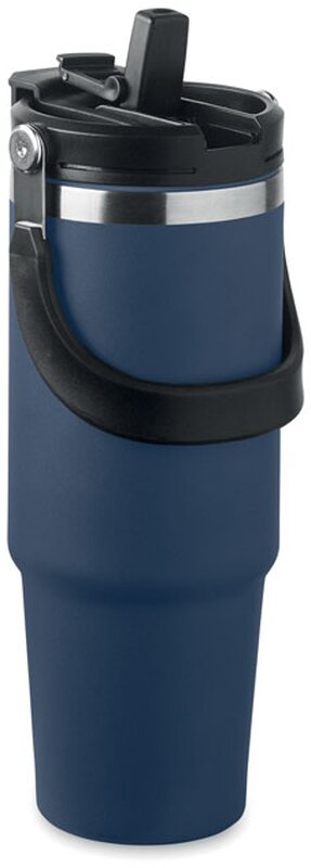 Dvoustěnný hrnek z recyklované nerezové oceli (90 % recyklované nerezové oceli a 10 % nerezové oceli) s víčkem s vnitřním brčkem a otvorem pro přímé pití. Rukojeť pro přenášení. Objem 850 ml.