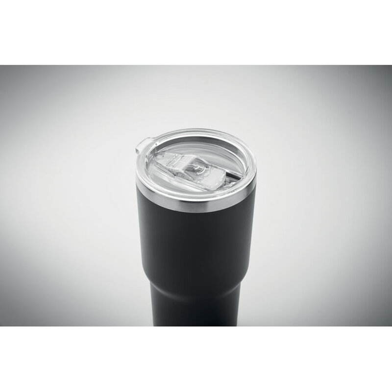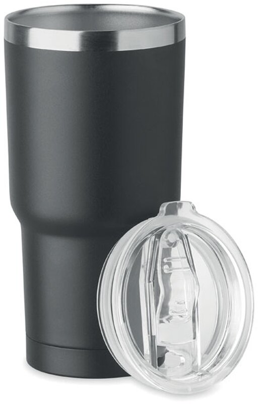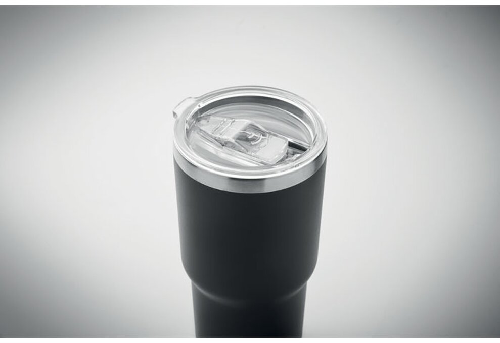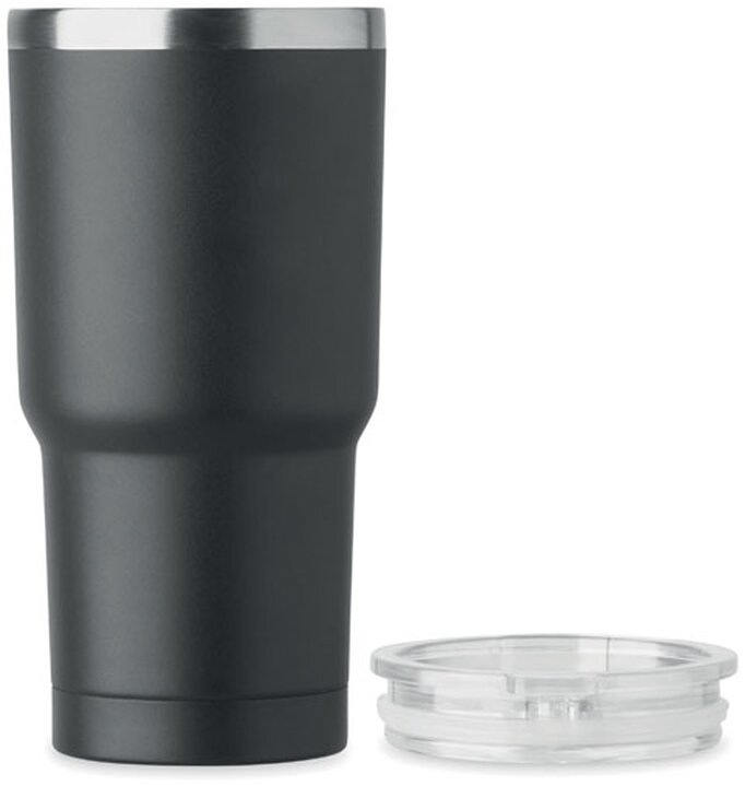 Dvoustěnný pohárek z recyklované nerezové oceli (90 % recyklované nerezové oceli a 10 % nerezové oceli). Víčko s posuvným otvorem pro pití. Objem 500 ml.
