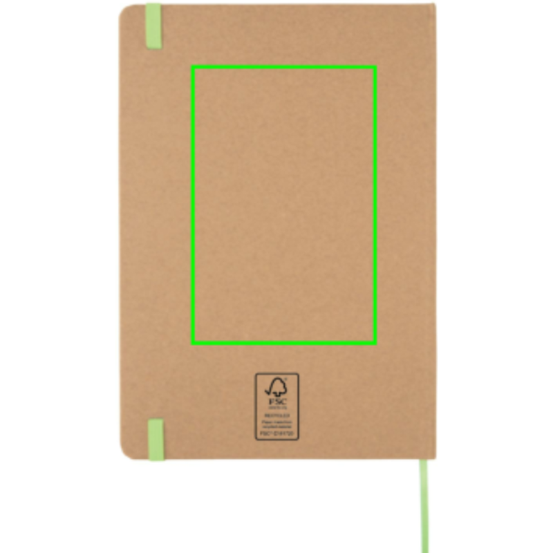 EKO poznámkový blok s kraftovým obalem a listy z recyklovaného papíru. 72 listů/144 stran papíru o gramáži 70 g/m2. Listy v krémovém odstínu. Se záložkou a uzavíráním na gumičku ve stejném barevném provedení.