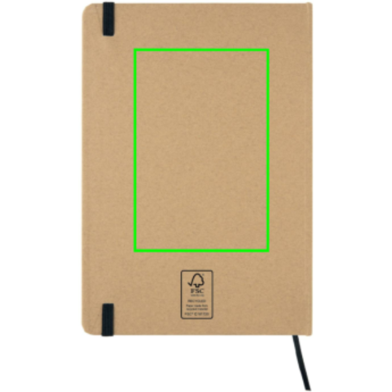 EKO poznámkový blok s kraftovým obalem a listy z recyklovaného papíru. 72 listů/144 stran papíru o gramáži 70 g/m2. Listy v krémovém odstínu. Se záložkou a uzavíráním na gumičku ve stejném barevném provedení.