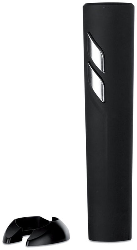 Elektrický otvírák na víno v matném černém provedení. Otvírák je vyrobený z ABS. Řezač fólie jako stojan. 4 ks baterií AA nejsou součastí balení.