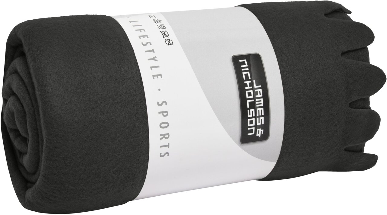 Fleecová deka s kulatými třásněmi. Dodává se jako dekorativní dárek zabalená v roli. Logo lze aplikovat výšivkou nebo sublimační etiketou přes lem deky. Deka je vhodná pro gastro provozy (restaurace, hotely, sportovní centra)