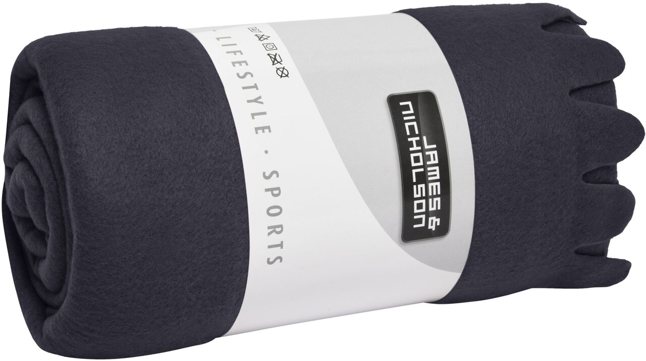Fleecová deka s kulatými třásněmi. Dodává se jako dekorativní dárek zabalená v roli. Logo lze aplikovat výšivkou nebo sublimační etiketou přes lem deky. Deka je vhodná pro gastro provozy (restaurace, hotely, sportovní centra)