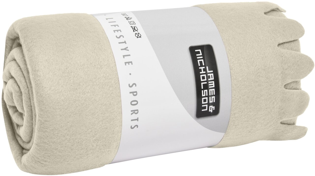 Fleecová deka s kulatými třásněmi. Dodává se jako dekorativní dárek zabalená v roli. Logo lze aplikovat výšivkou nebo sublimační etiketou přes lem deky. Deka je vhodná pro gastro provozy (restaurace, hotely, sportovní centra)
