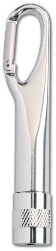 LED svítilna s karabinou. Hliníková. Baleno v dárkové krabičce. Včetně 4 baterií.