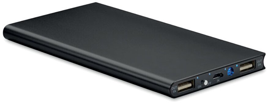 Hliníková solární power banka 8000mAh, kapacita pro použití s chytrým telefonem, výstupní proud DC5V/1A. Indikační dioda a USB kabel s mikro USB konektorem.