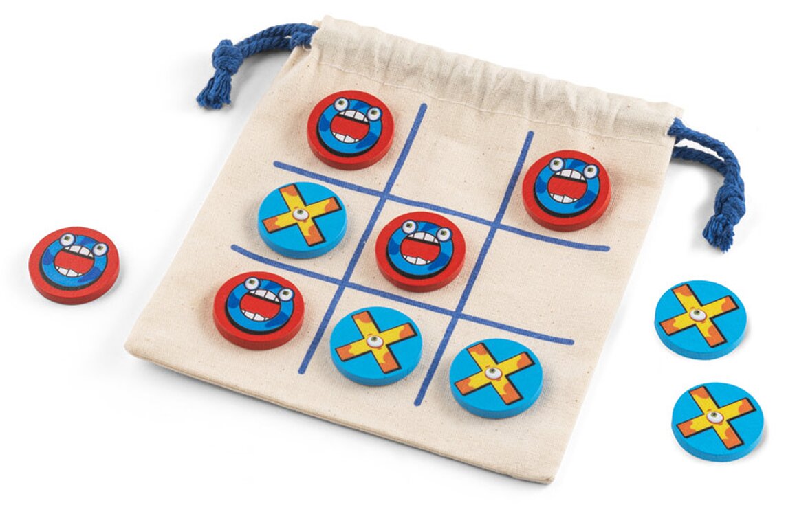 Klasické piškvorky CROSSES. Sada obsahuje 10ks dřevěných žetonů a bavlněný sáček se zdrhovadlem která slouží jako herní pole. Lehké a praktické pro hru kdekoliv. Žeton: ø25 mm | Sáček: 120 x 130 mm, 140 g/m².