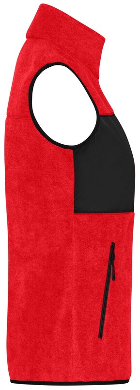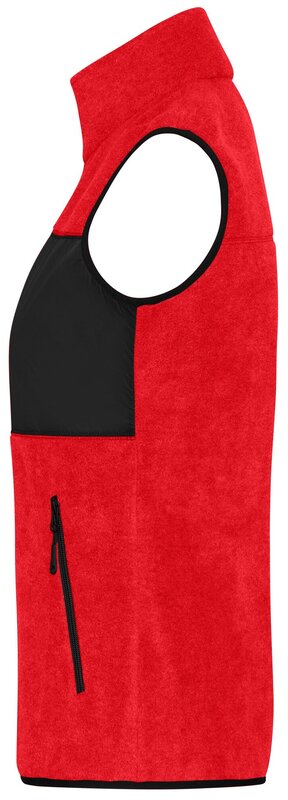 Fleecová vesta s mixem materiálů - polyester fleece, hladký polyester - pro možnost tisku loga. Klasický měkký a snadno udržovatelný fleece z recyklovaného polyesteru. Vsadka s tkané látky s náprsní kapsou. 2 boční kapsy, 1 náprsní kapsa na zip. Uvnitř dvě kapsy. Dvoucestný zip. Kvalitní značkové zipy - YKK