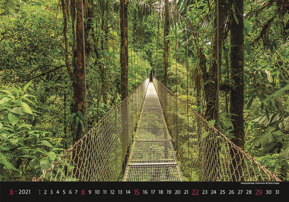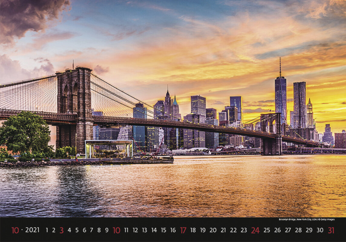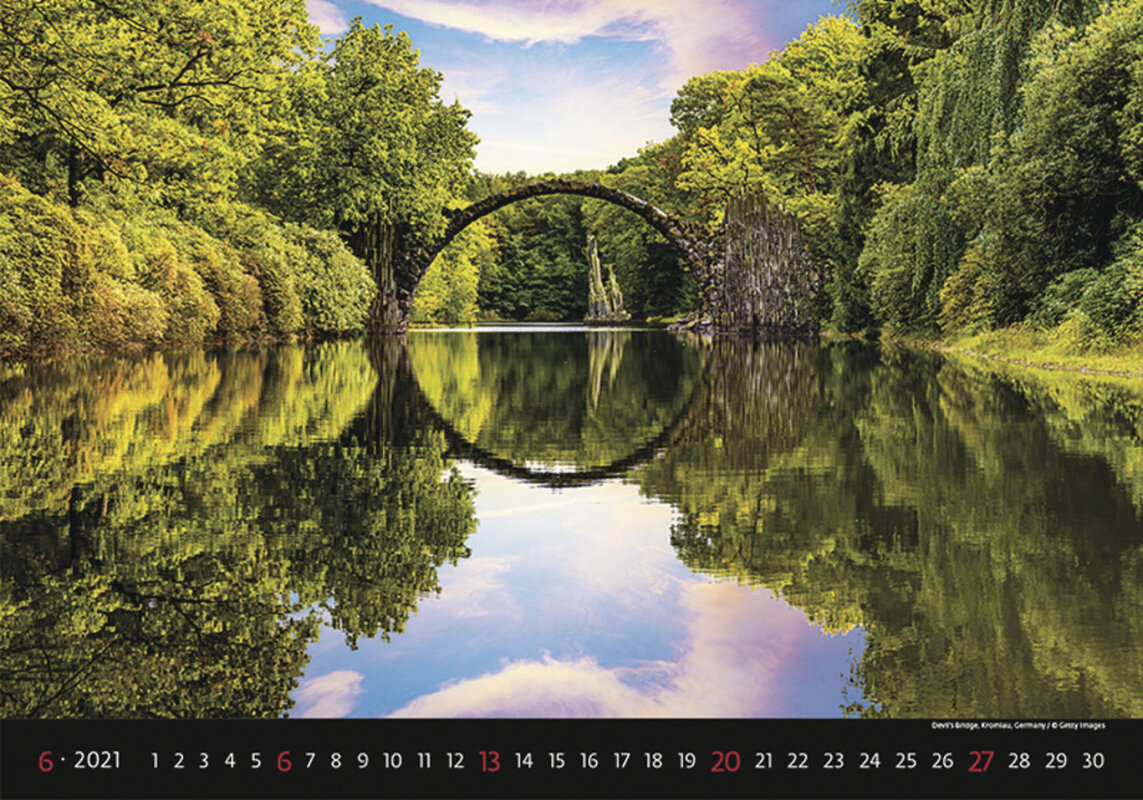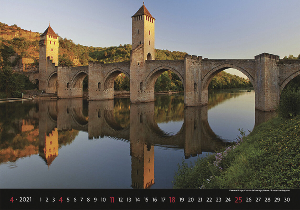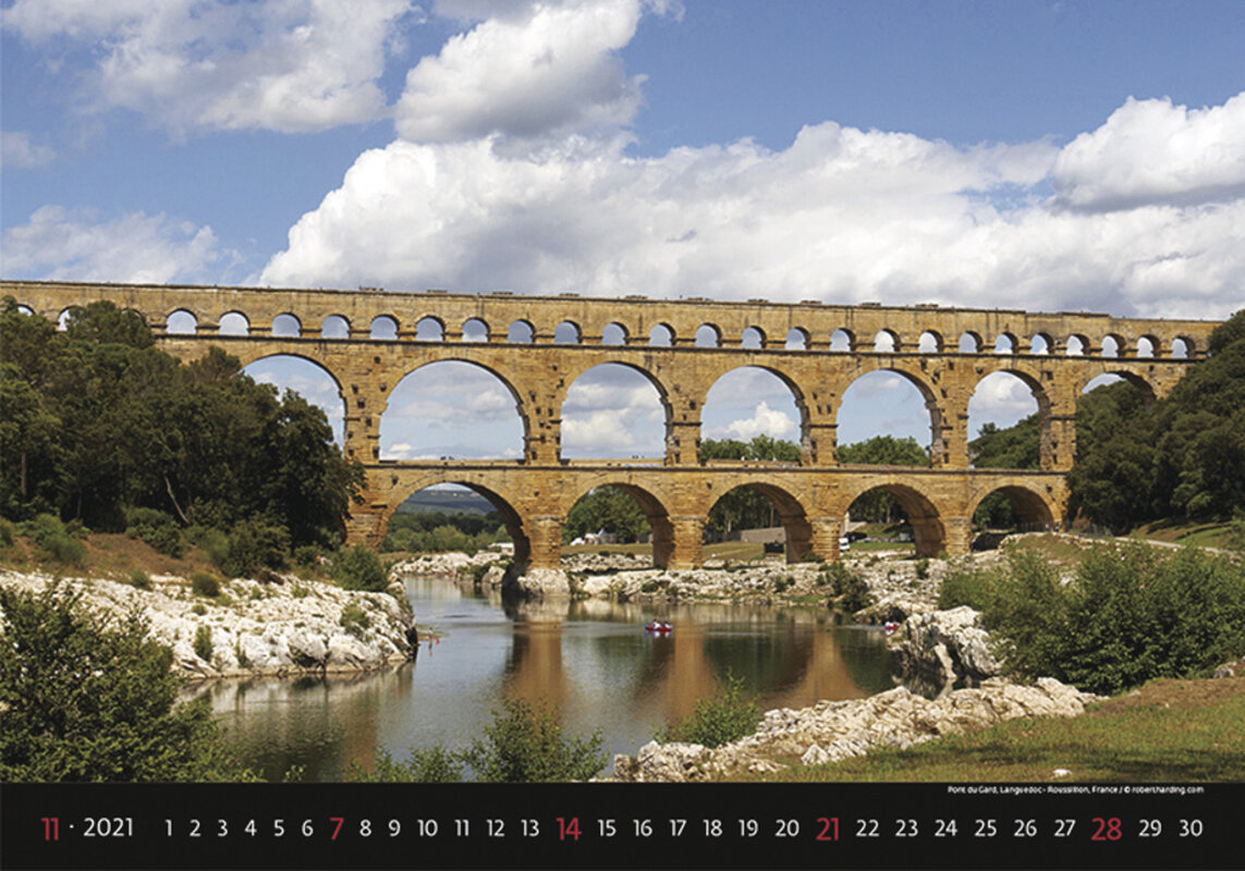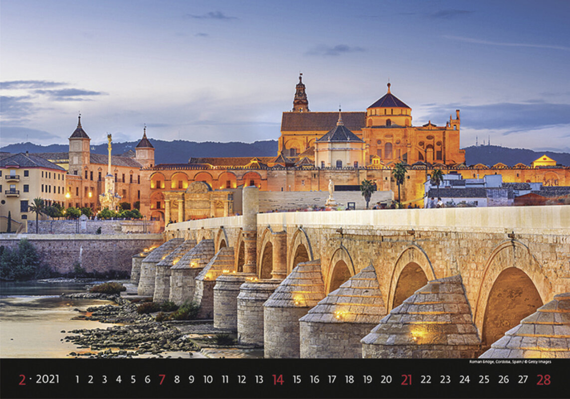 Nástěnný kalendář s fotografiemi moderních i historických mostů.