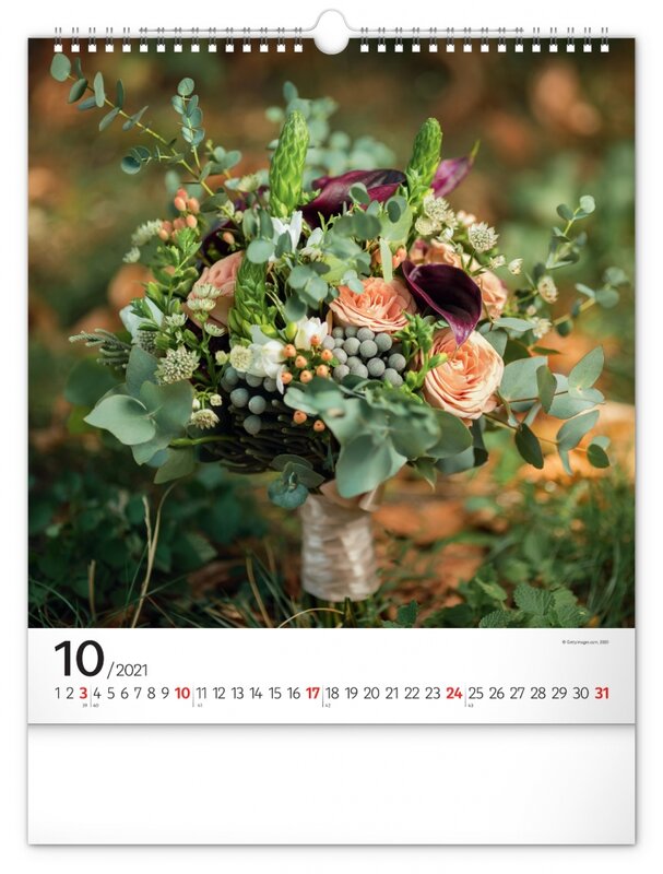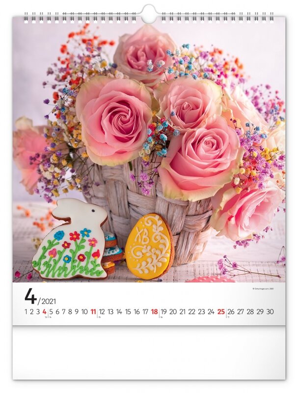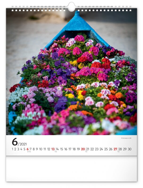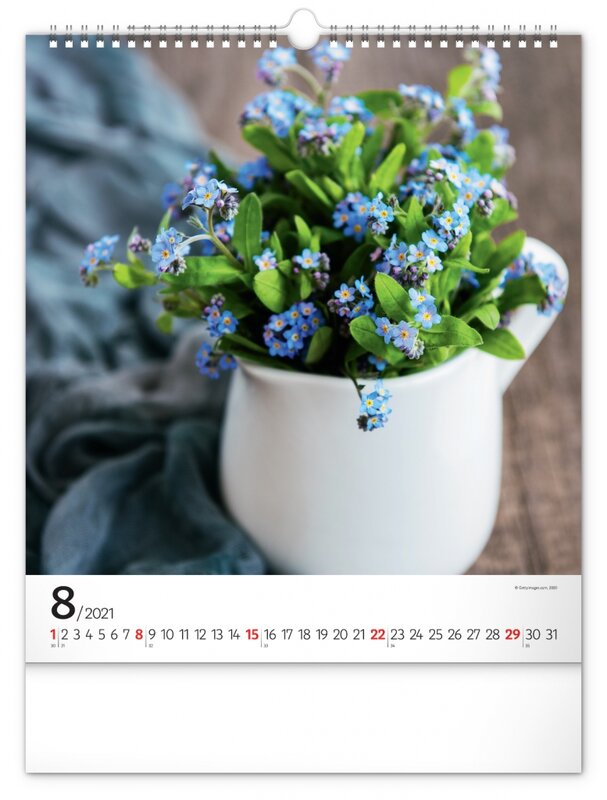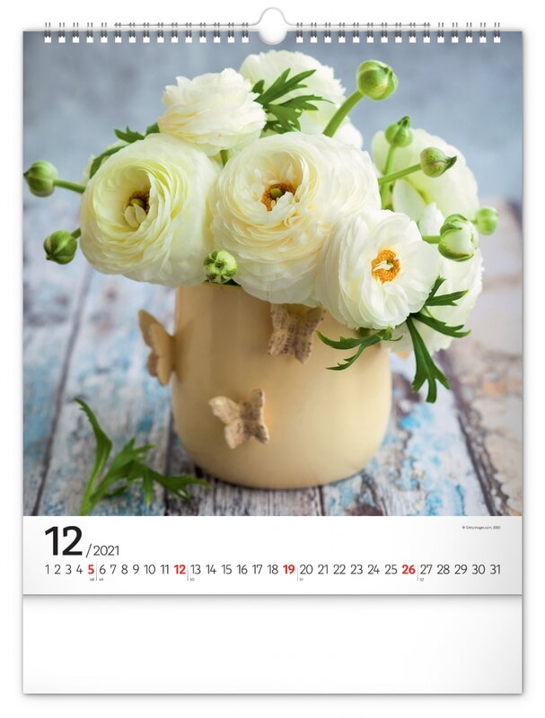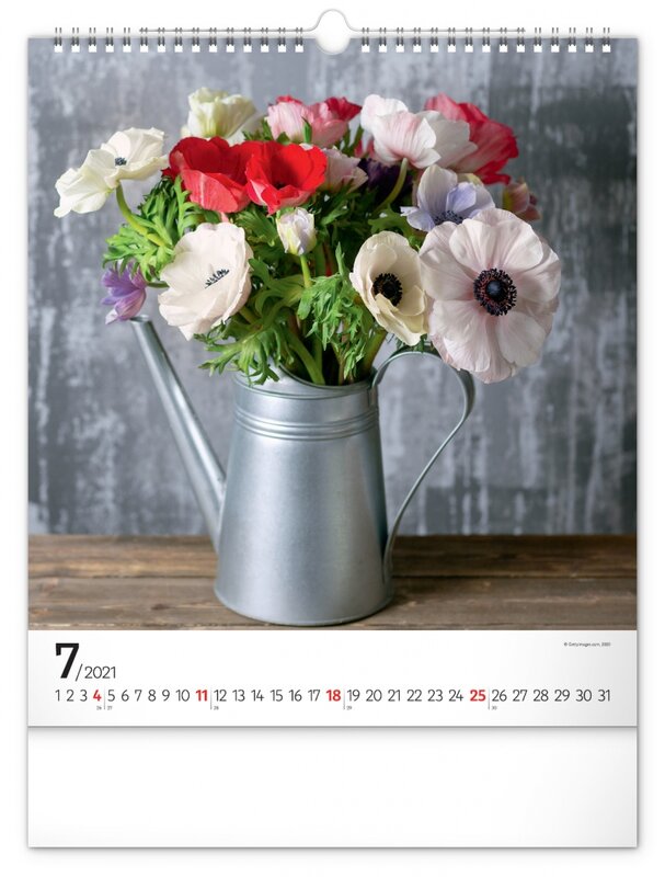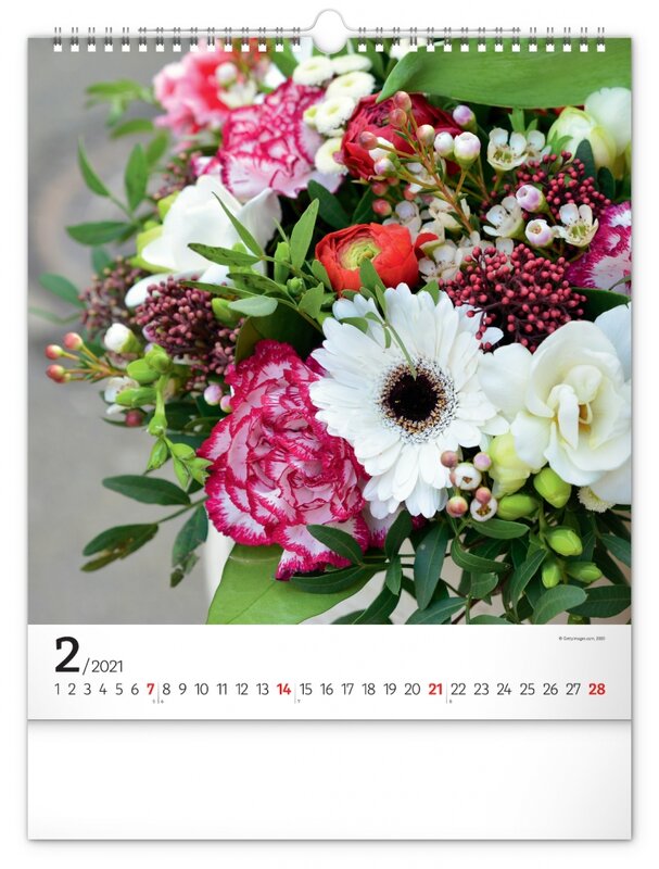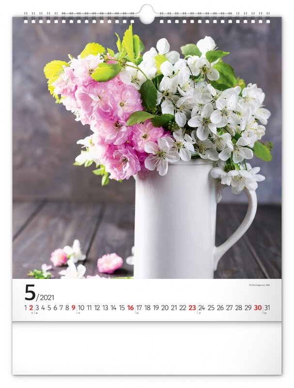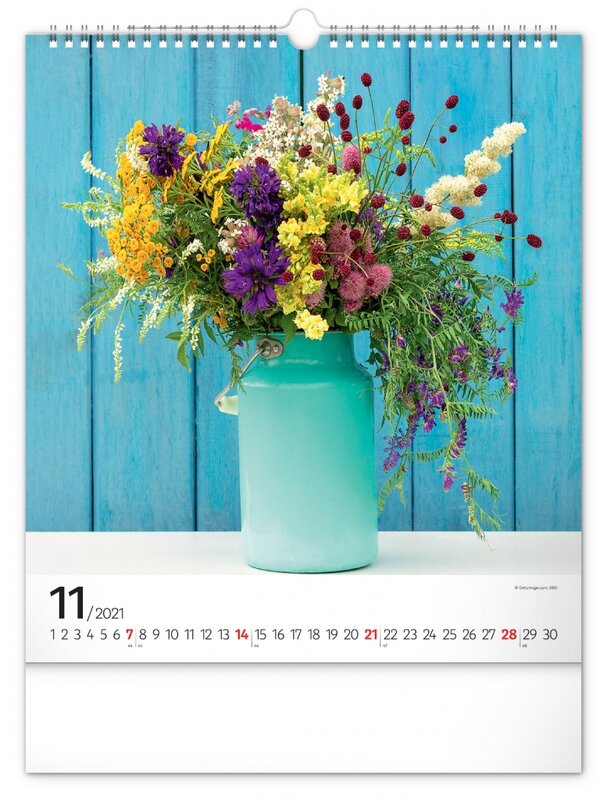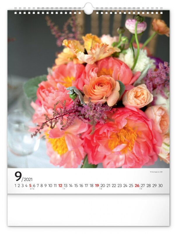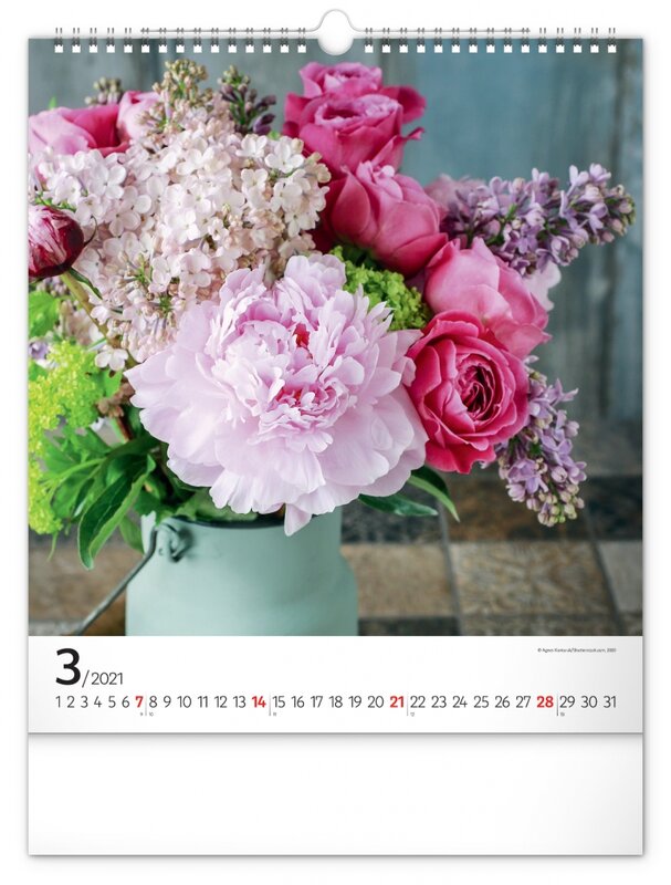 Nástěnný kalendář zaměřený na čerstvé, pestrobarevné květiny.