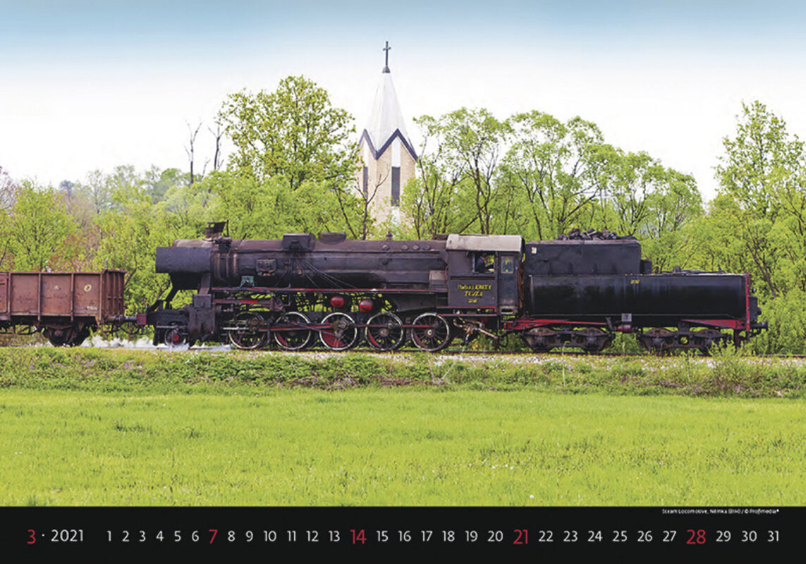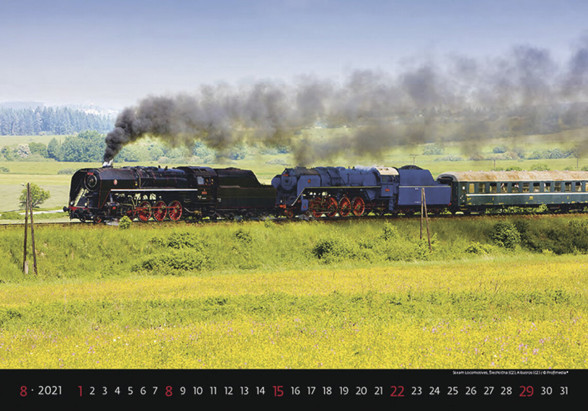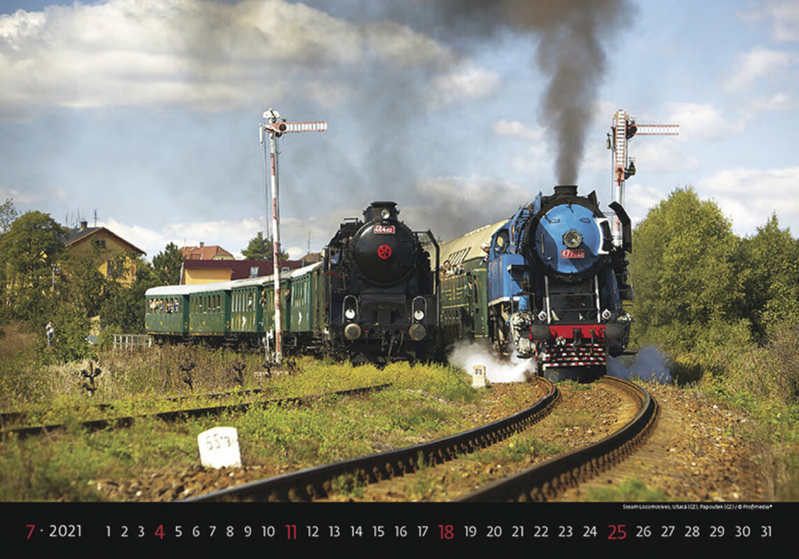 Nástěnný kalendář zaměřený na nadšence do moderních i historických vlaků.