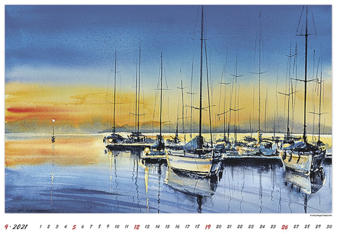Nástěnný kalendář s malovanými obrázky s tématikou vody.