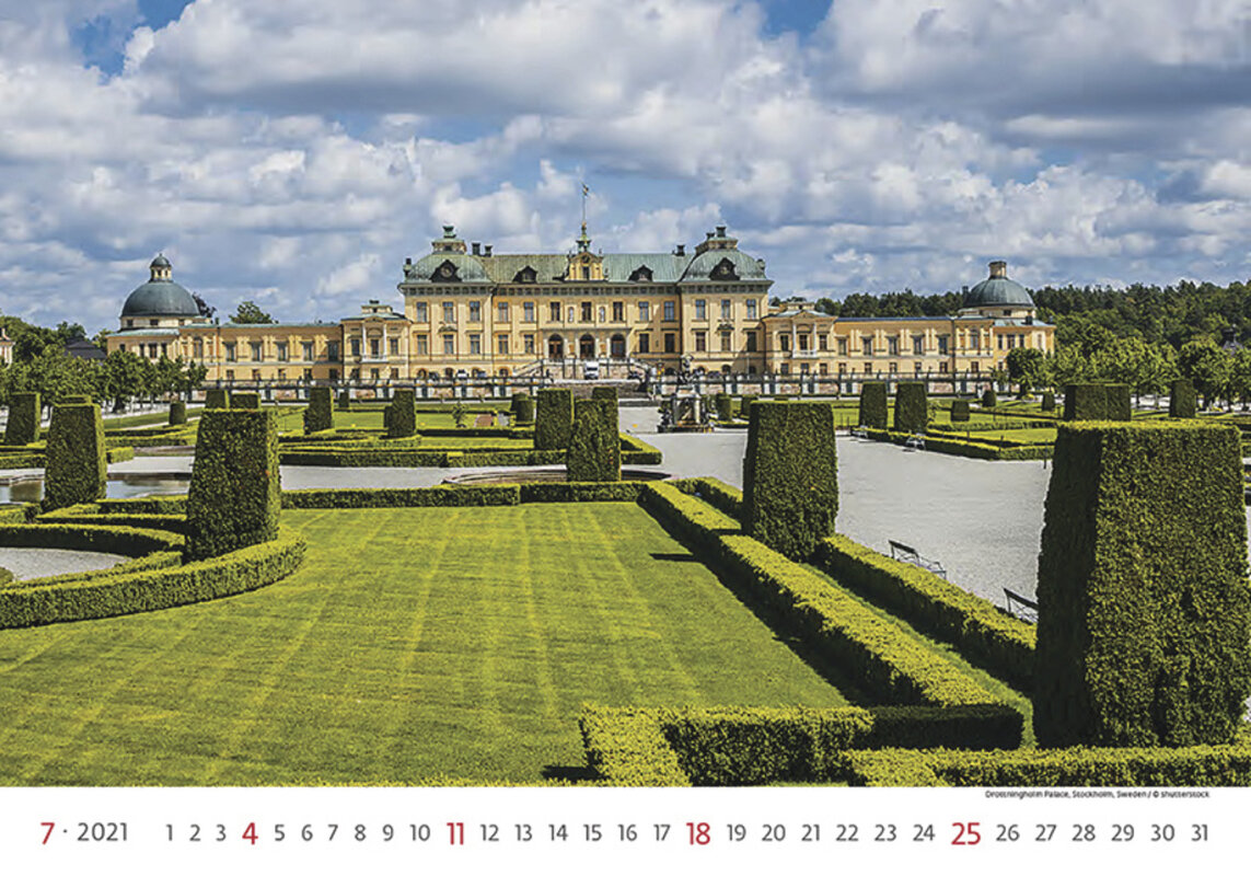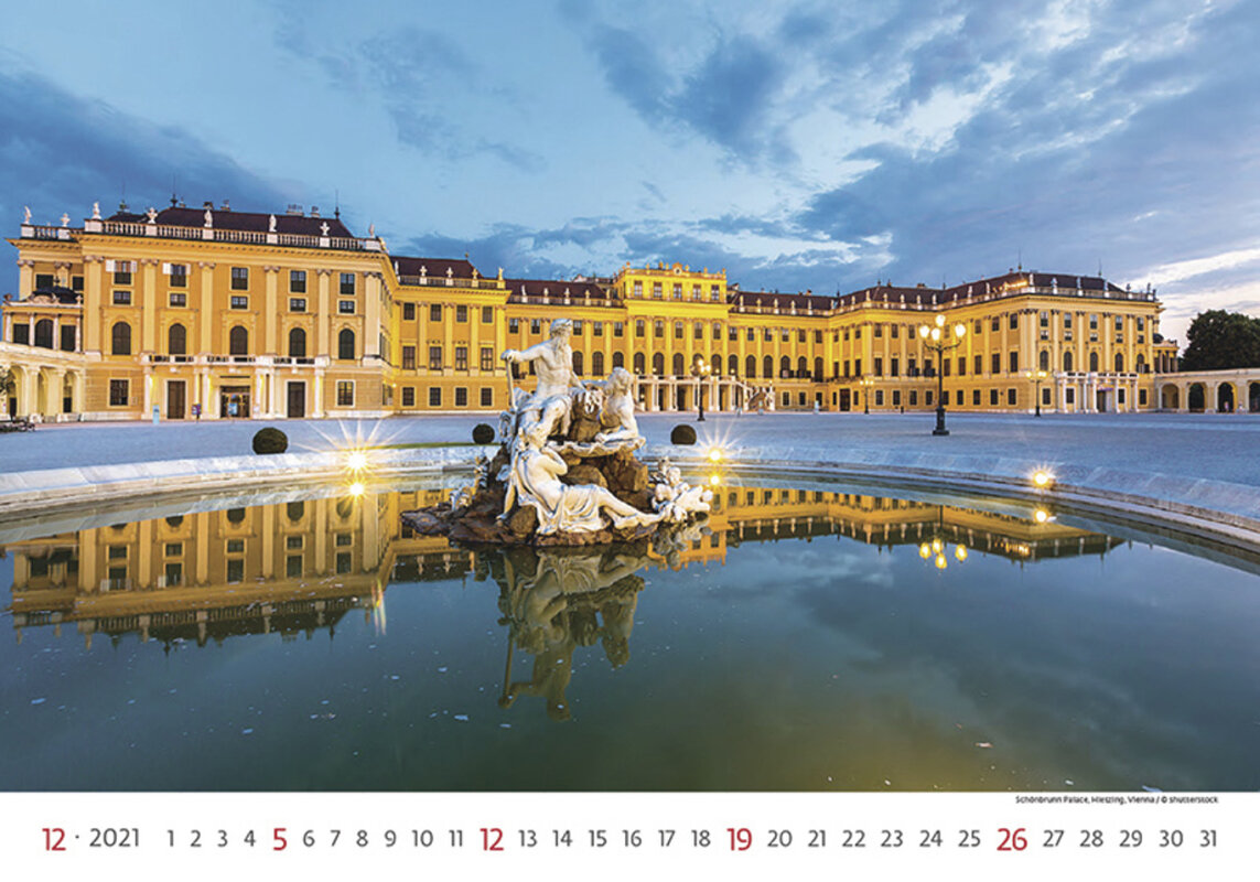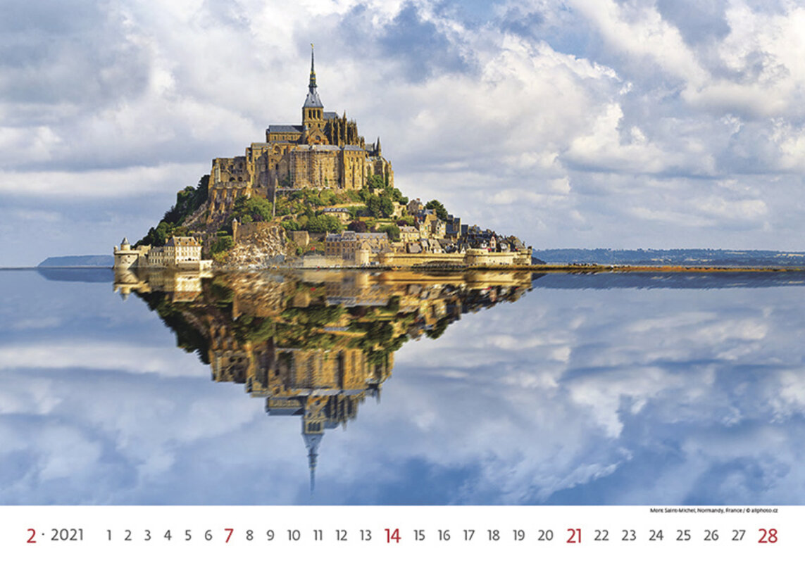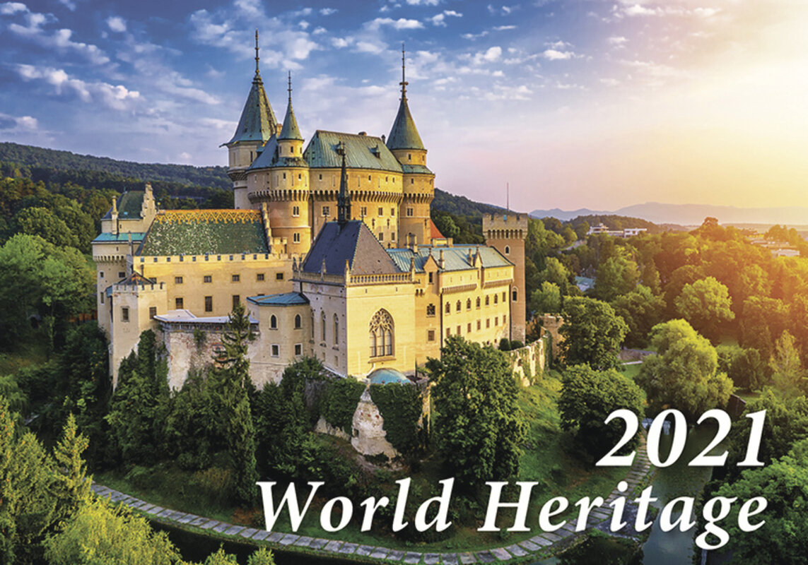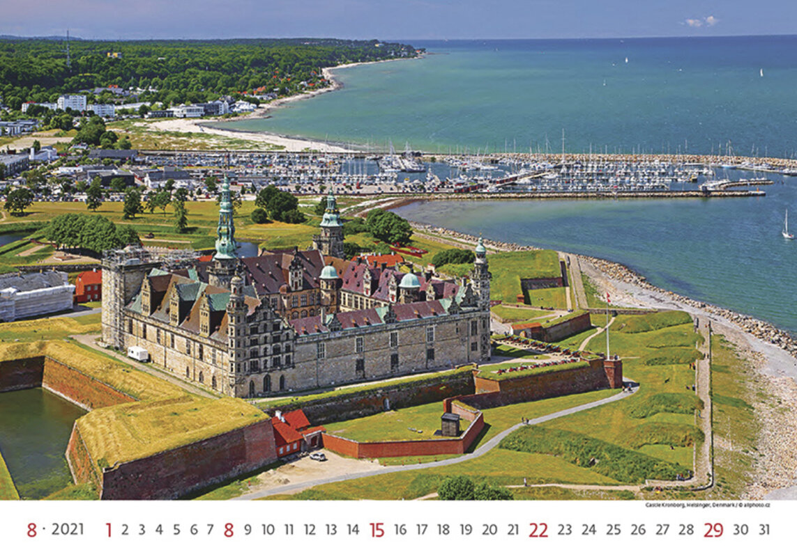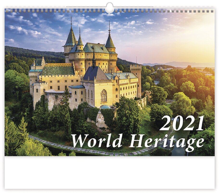 Nástěnný kalendář s fotografiemi majestátních hradů a zámků.