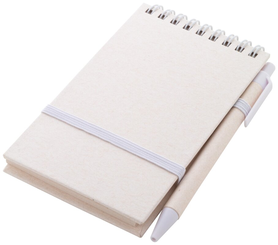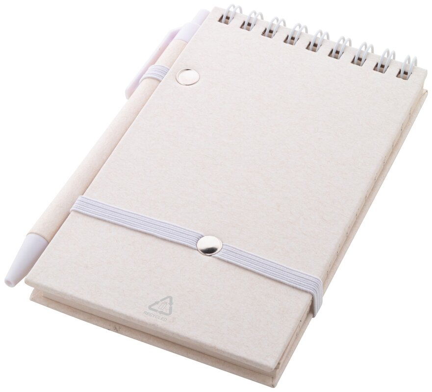 Blok má pevnou spirálovou vazbu v barvě desek, 70 linkovaných listů z recyklovaného papíru a praktickou gumičku pro bezpečné uzavření. Nechybí ani poutko na pero, do kterého perfektně pasuje přiložená ekologická propiska z recyklovaného ABS plastu.