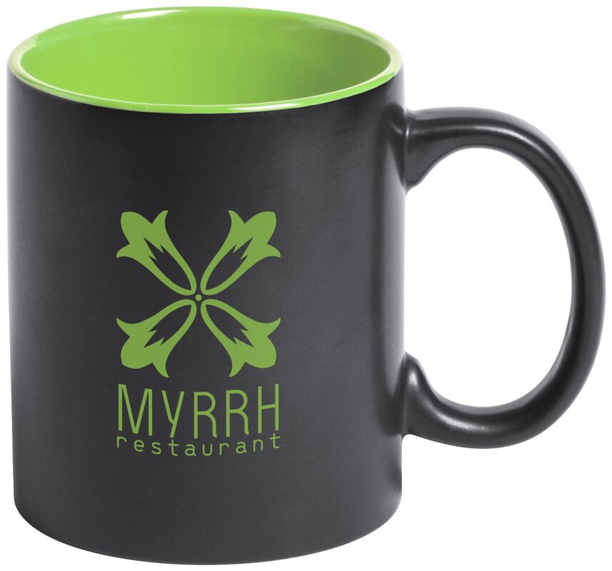 Ideální pro potisk pomocí laserového gravírování - výsledná barva motivu odpovídá vnitřní barvě hrnku.