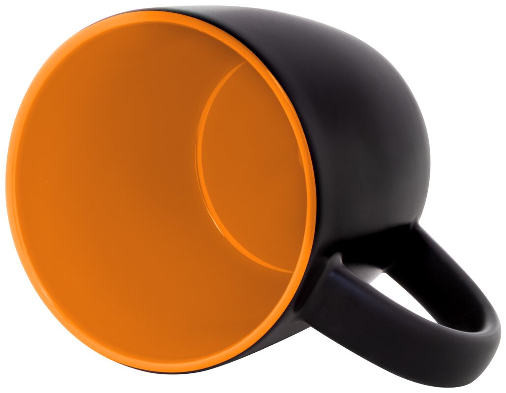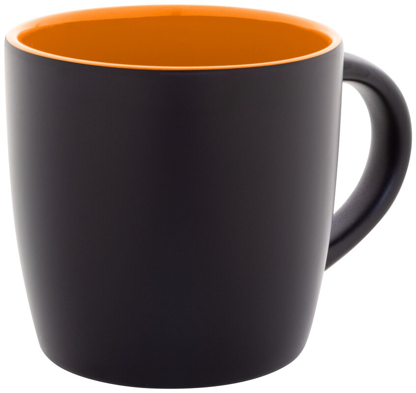 Trendy keramický hrnek v kombinaci vnější černé barvy a barevného vnitřku.