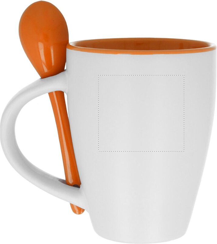 Dvoubarevný keramický šálek se lžičkou, o objemu 250 ml.
