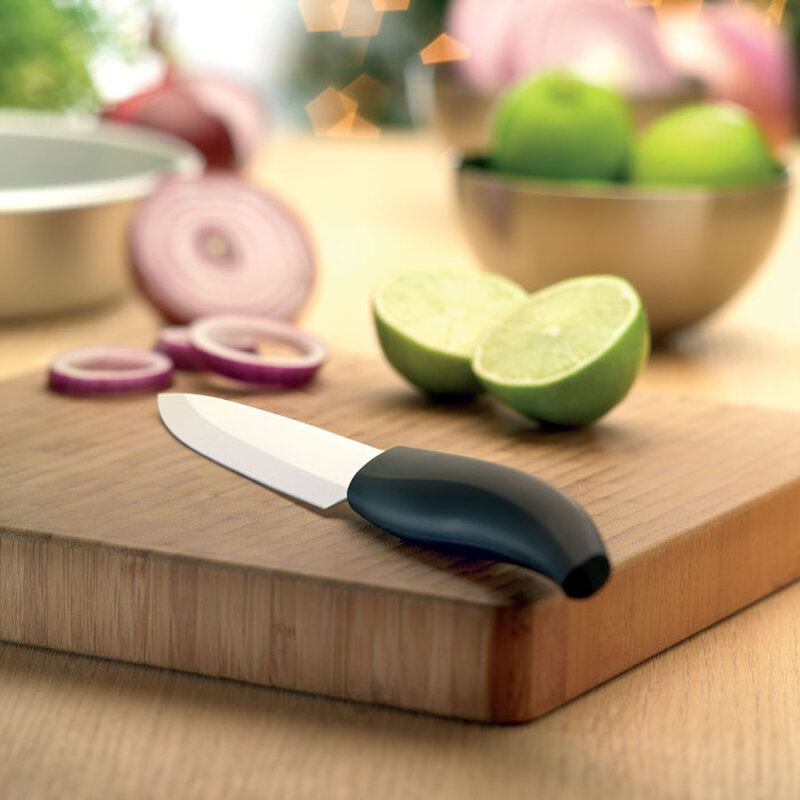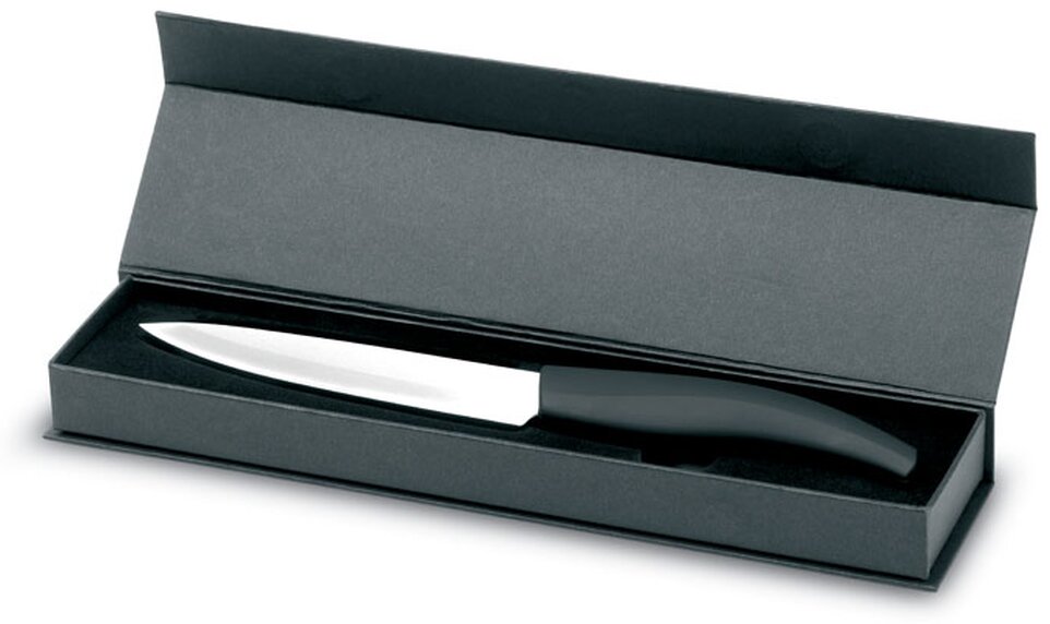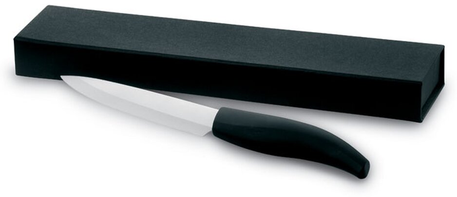 Velice lehký, odolný keramický nůž, který má 13 cm čepel. Nůž je zabalen v dárkovém balení s magnetickým klipem.