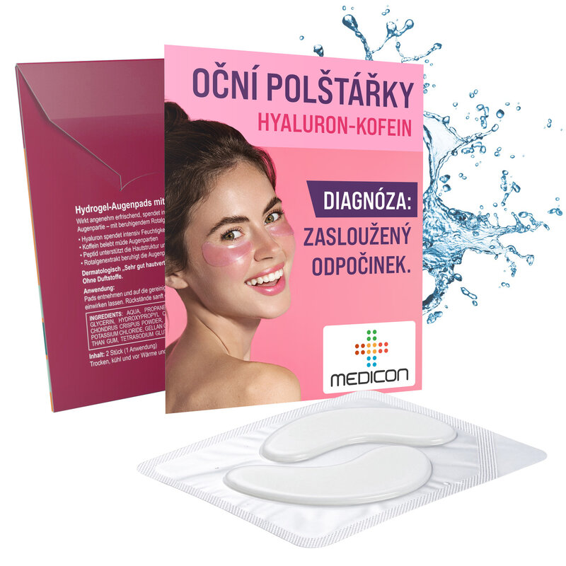 Kolagenová oční maska s hydrogelovými polštářky kombinuje kyselinu hyaluronovou pro intenzivní hydrataci, kofein pro revitalizaci, anti-aging peptid pro vyhlazení pleti a extrakt z červených řas se zklidňujícím účinkem. Veganské složení bez parfemace, alkoholu a rozpouštědel je dermatologicky testováno s hodnocením „Velmi dobrá snášenlivost". Nezanechává lepivé zbytky.