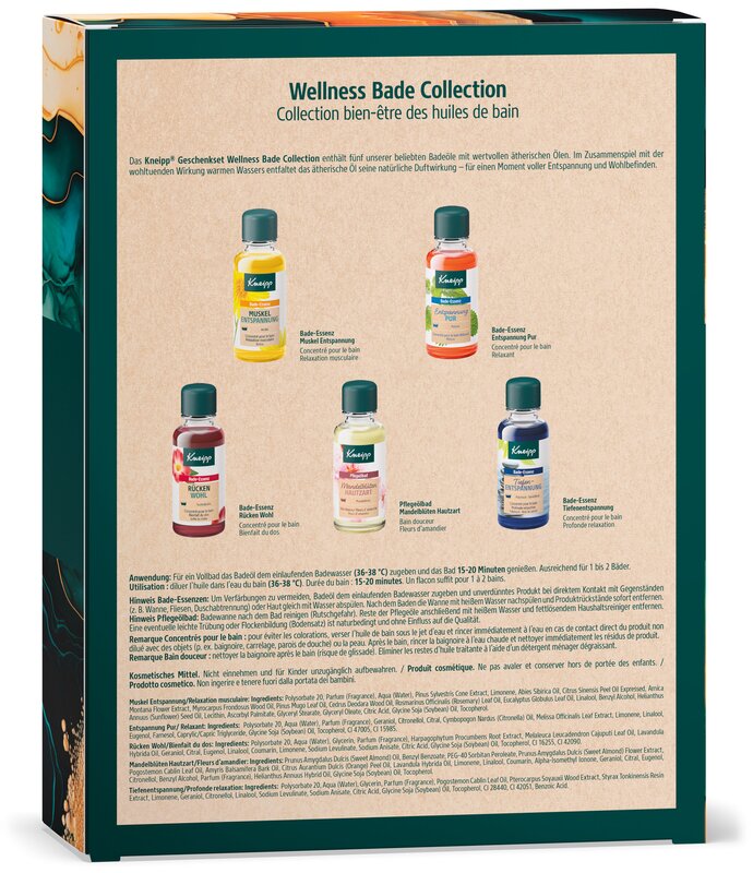 Představte si horkou vanu, ze které stoupá jemná vůně bylin a květů, přesně takový relaxační zážitek nabízí Kneipp dárková sada Oleje do koupele. V elegantní krabičce najdete pět lahviček po 20 ml, které vystačí na až 10 aromaterapeutických koupelí. Každý olej je navržen tak, aby podpořil uvolnění, regeneraci a harmonii těla i mysli.