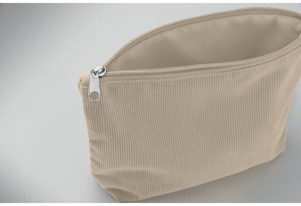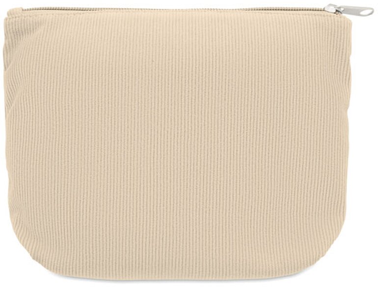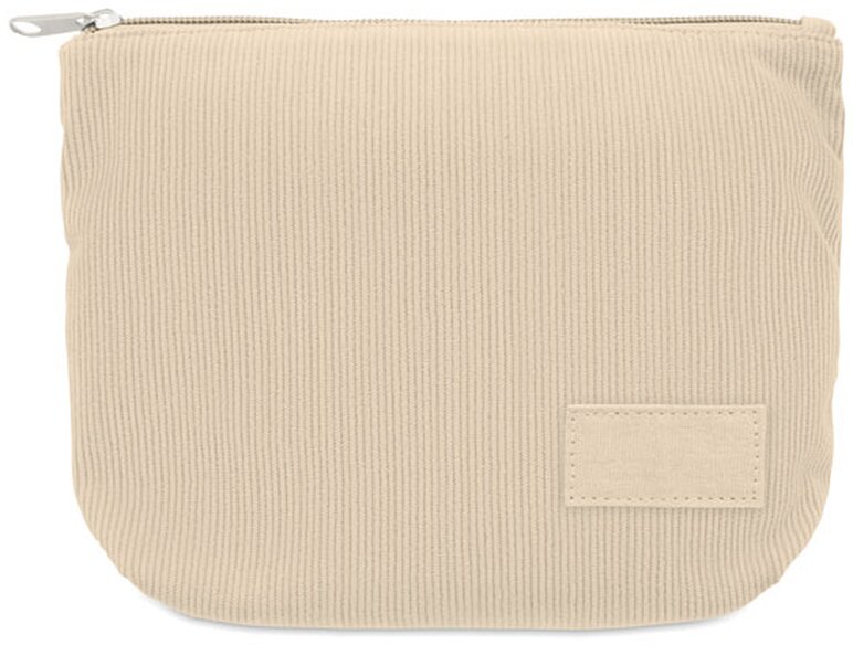 Kosmetická taštička z polyesterového manšestru s polyesterovou podšívkou.