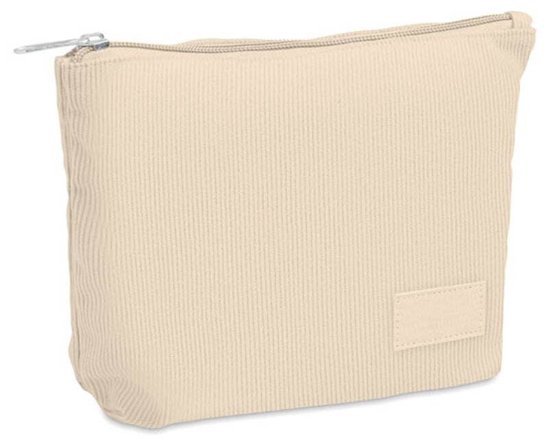 Kosmetická taštička z polyesterového manšestru s polyesterovou podšívkou.