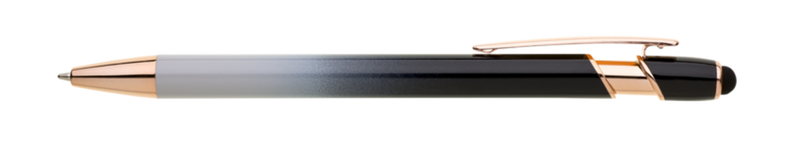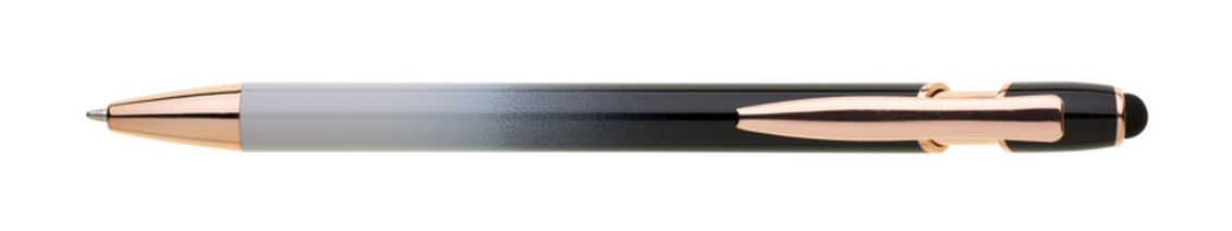 Kovová propiska, která zaujme na první pohled výrazným barevným přechodem v teplých tónech a elegantními detaily v odstínu růžového zlata. Praktickým bonusem je dotykový hrot, díky kterému snadno ovládnete telefon nebo tablet bez nutnosti sundávat rukavice či hledat displejovou tužku. Uvnitř se nachází modře píšící náplň X-20, která zajišťuje plynulé a příjemné psaní. Ideální volba pro reprezentativní kancelář, firemní dárky i každodenní použití.
