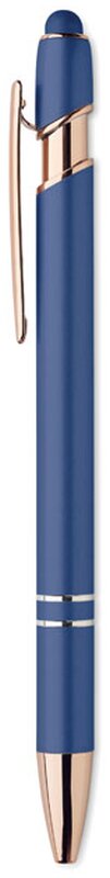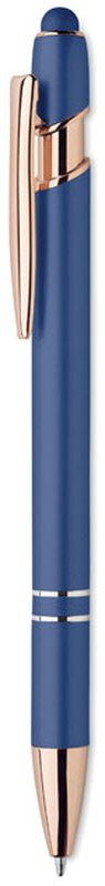 Recyklované hliníkové stylusové kuličkové pero s růžově zlatými detaily. Modrý inkoust.