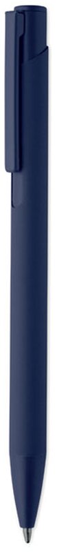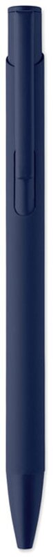 Kovová propiska z recyklovaného hliníku s kovovým klipem a barevným pogumovaným tělem. Modrý inkoust.