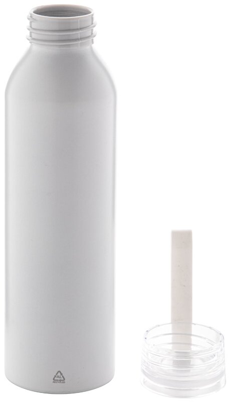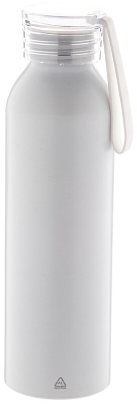 Sportovní láhev z recyklovaného hliníku s víčkem v odpovídající barvě a silikonovým popruhem s objemem 600 ml.