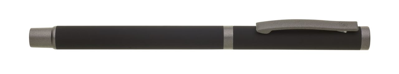 Elegantní kovový roller RIFLO SOFT s tmavě šedými doplňky a pogumovaným povrchem. Keramická náplň, která píše modře.
