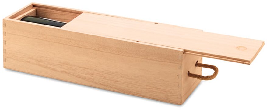 Dřevěná krabice na víno s držadlem a vysouvací stěnou.