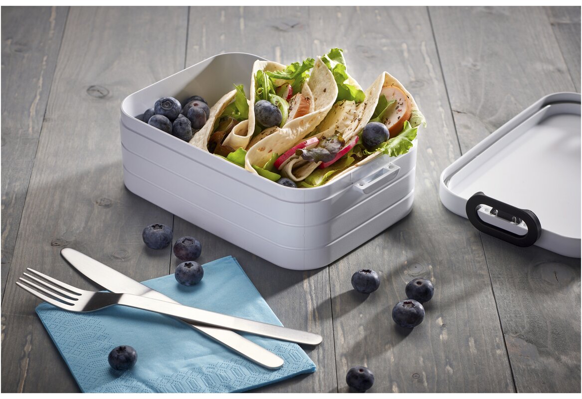 Krabička na oběd značky MEPAL je střední velikosti s těsnicím kroužkem, který udržuje obsah čerstvý a chutný. Vhodné pro 4 sendviče. Včetně dělicí přepážky. Objem činí 900 ml. Vhodné do myčky. Neobsahuje BPA.