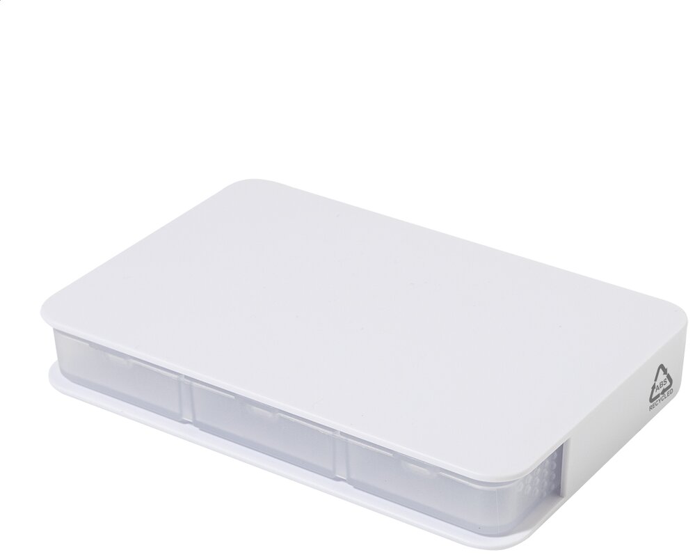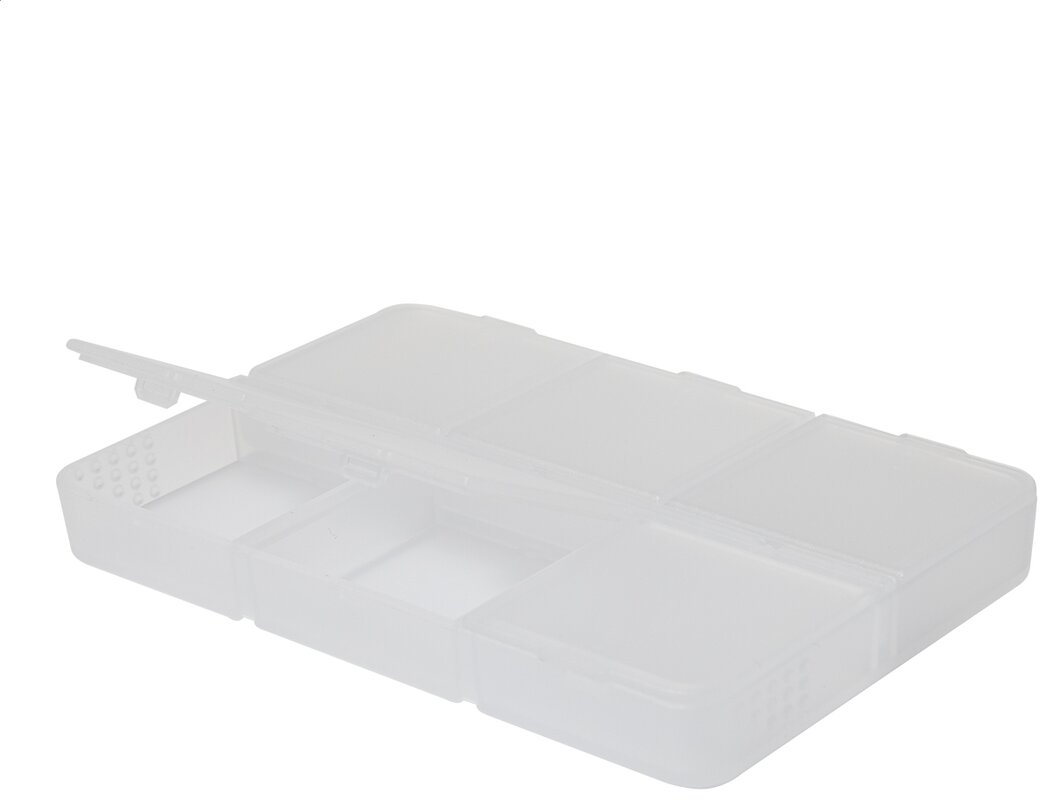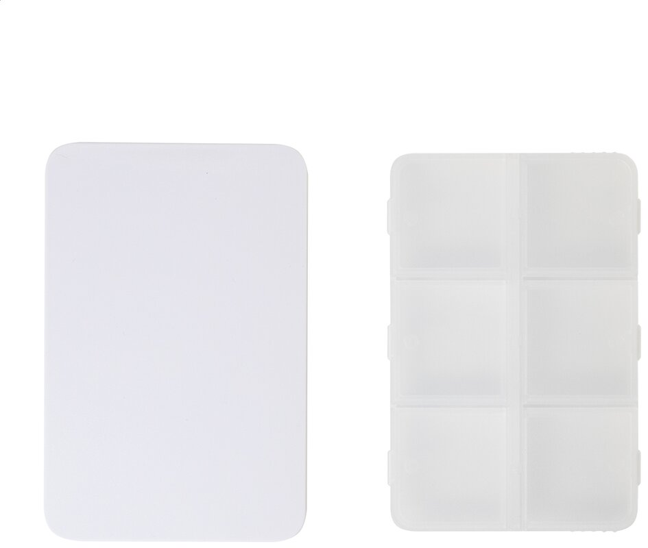 Box na pilulky z recyklovaného ABS plastu se 6 přihrádkami.