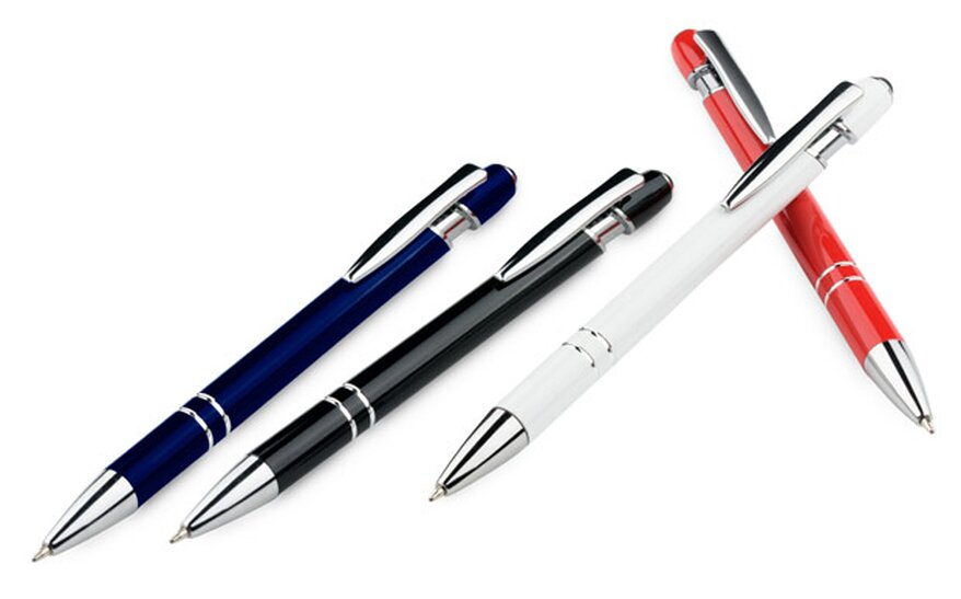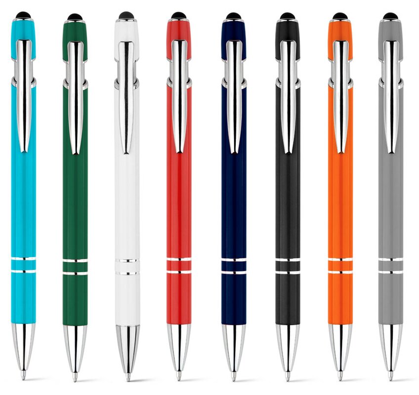 Designové kuličkové pero vyrobené z recyklovaného hliníku s dotykových touch koncem.