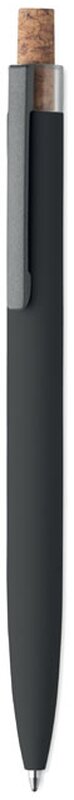 Kuličkové pero z recyklovaného hliníku s korkovým tlačítkem a kovovým klipem. Modrý inkoust.