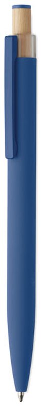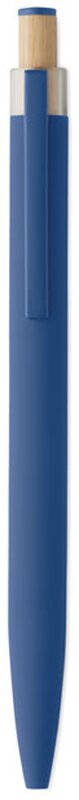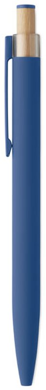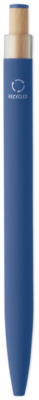 Kuličkové pero z recyklovaného hliníku s bambusovým tlačítkem a barevně sladěným kovovým klipem. Modrý inkoust.