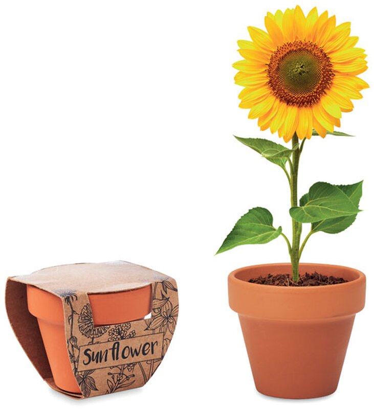 Malý hliněný terakotový květináč včetně semínek slunečnice. Vyrobeno v EU.