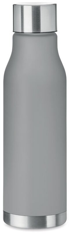 Láhev na pití z RPET s pogumovanou povrchovou úpravou a víčkem z nerezové ocele se silikonovým kroužkem. Bez BPA. Nevhodné pro sycené nápoje. Objem: 600 ml.