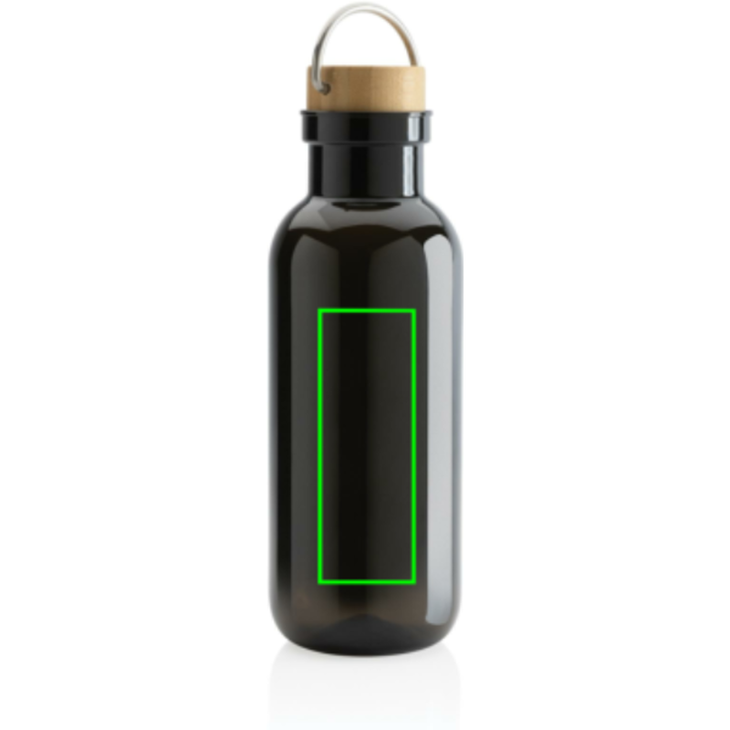 Nepropustná lahev na vodu s objemem 680ml, se stylovým bambusovým uzávěrem a praktickým madlem. Je určena pouze pro studené nápoje a pro ruční mytí. Tělo lahve je vyrobené z GRS recyklovaného PET plastu. Podíl použitého recyklovaného materiálu vzhledem k celkové váze produktu: 56 %. Bambusový uzávěr s FSC certifikací. Bez BPA. Produkt je zabalen v FSC kraftové krabičce.