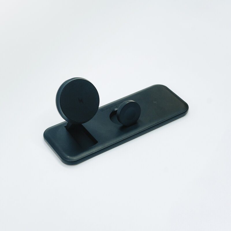 Ultrarychlá 15W magnetická nabíječka 3v1 Torrance s certifikací RCS, ideální pro firemní potisk. Nabíjejte současně telefon s magnetickým nabíjením (jako stojánek nebo naplocho), druhý telefon nebo sluchátka na 5W podložce a hodinky iWatch nejnovějších generací. Vyrobena z recyklovaného ABS (37% recyklovaný obsah), dodáváno se 120cm recyklovaným TPE kabelem. Bez PVC, baleno v obalech se sníženým plastem.