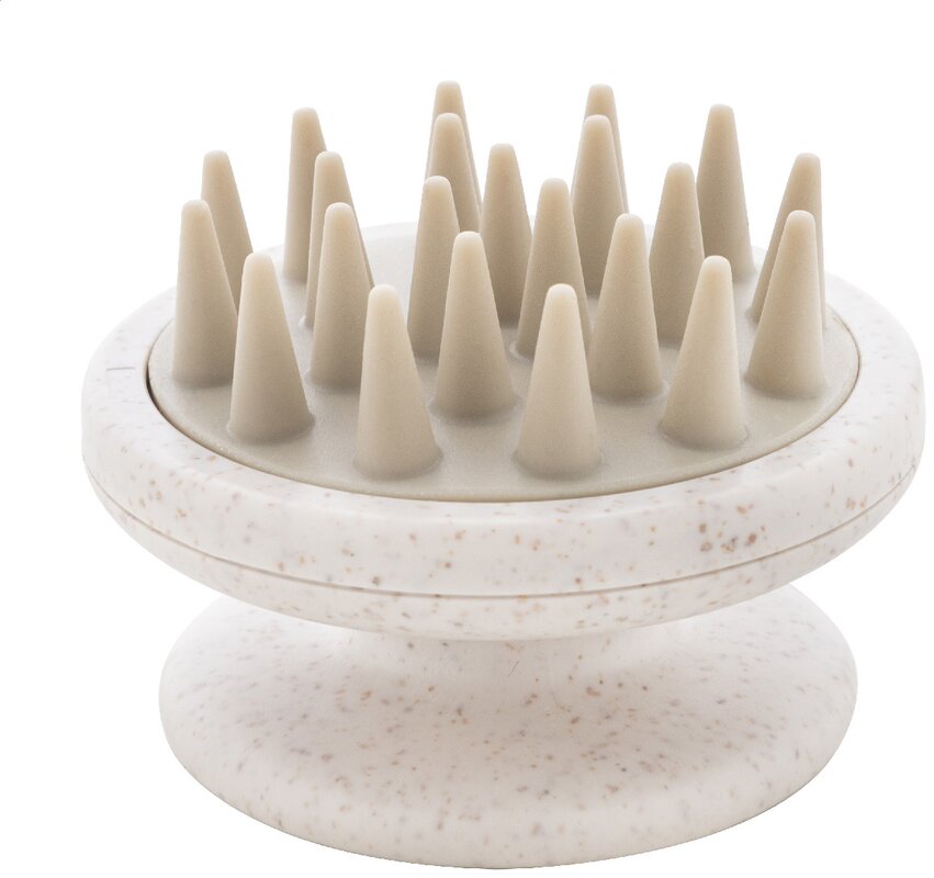 Ekologický masážní přístroj na pokožku hlavy z pšeničné slámy a silikonových štětin. Ideální pro stimulaci krevního oběhu a lepší rozložení šamponu během mytí vlasů.
