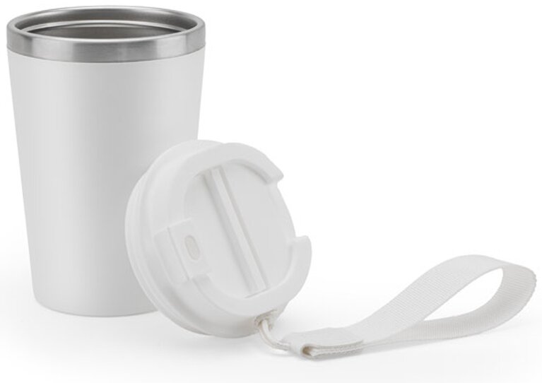 cestovní hrnek z nerezové oceli (90 % recyklované rSS) a polypropylenu (PP) s dvojitou stěnou, která pomáhá udržet teplotu nápoje po delší dobu. Matný povrch dodává moderní vzhled, zatímco víčko z PP je nepropustné a zajišťuje bezpečné přenášení. Praktická rukojeť z PU a PET umožňuje pohodlné držení a přenášení. Objem 460 ml je ideální pro kávu, čaj nebo studené nápoje na cestách.