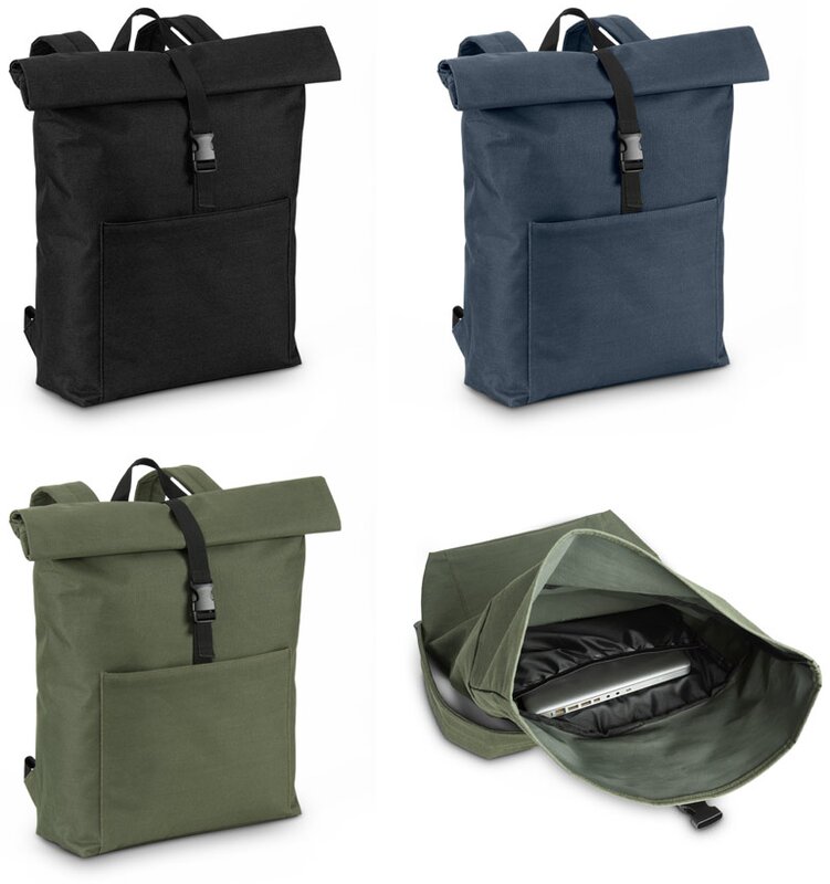 Odolný batoh z polyesteru s podšívkou 210D nabízí moderní a funkční řešení pro bezpečné nošení notebooku. Díky rolovacímu uzávěru působí minimalisticky a zároveň umožňuje přizpůsobit objem batohu podle potřeby.