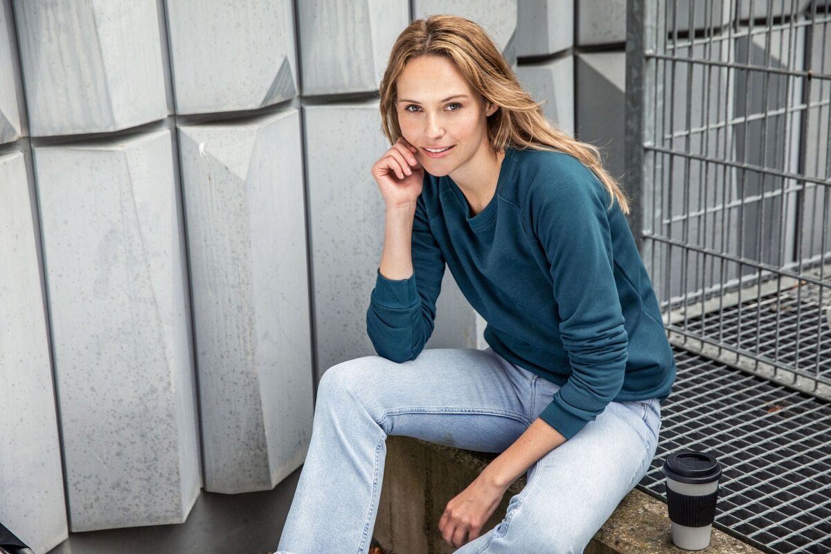 Dámská mikina s kulatým výstřihem z bavlny a polyesteru.
