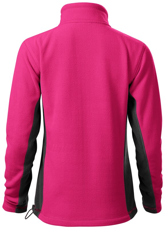 Dámská fleecová mikina s kontrastními vsadkami a detaily. Projmutý střih. Dvě kapsy na zip na předním dílu. Stojáček zakončený krytkou pro ochranu brady. Dekorativní prošití. Spodní lem ke stažení elastickou šňůrkou. Antipillingová úprava vnější strany materiálu.