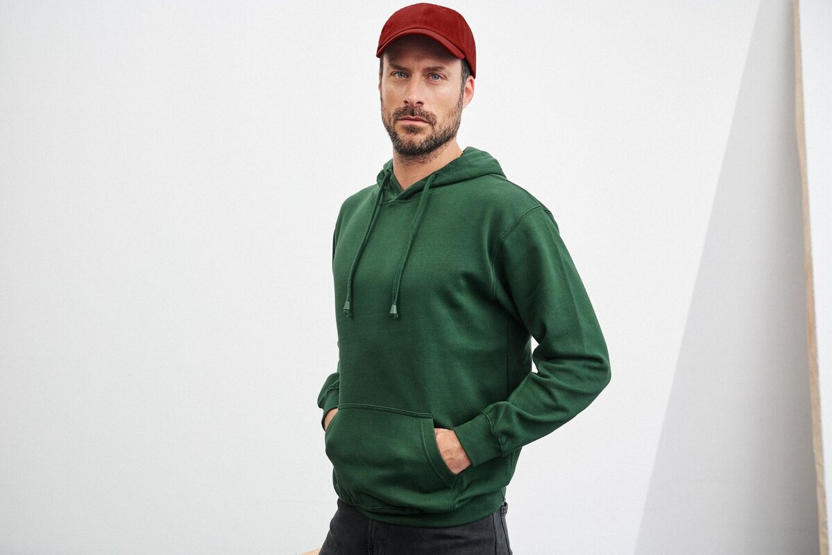 Klasická mikina James & Nicholson s kapucí v mnoha barvách. Mikina je vyrobená z 80% bavlny a 20% polyesteru. Vysoce kvalitní tkanina, zevnitř zdrsněná, krční límec a manžety s elastanem, dvouvrstvá kapuce, velká klokaní kapsa. Hmotnost: 300 g/m². Balení: 5/30 (ks v jednom sáčku / celkem ks v kartonu).