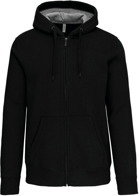 Límcová vsadka a kapuce v kontrastní barvě (šedá), 2-vrstvá kapuce, vsazené rukávy, široké žebrované manžety na rukávech a lemu, YKK zip, klokaní kapsa, LSF (low shrinkage fleece) pro menší srážení, pratelné na 40°, lze sušit v sušičce při nízké teplotě, nelze chemicky čistit 360g/m², 80% předepraná prstencová bavlna, 20% polyester, silikonové praní