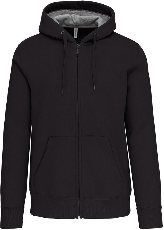 Límcová vsadka a kapuce v kontrastní barvě (šedá), 2-vrstvá kapuce, vsazené rukávy, široké žebrované manžety na rukávech a lemu, YKK zip, klokaní kapsa, LSF (low shrinkage fleece) pro menší srážení, pratelné na 40°, lze sušit v sušičce při nízké teplotě, nelze chemicky čistit 360g/m², 80% předepraná prstencová bavlna, 20% polyester, silikonové praní